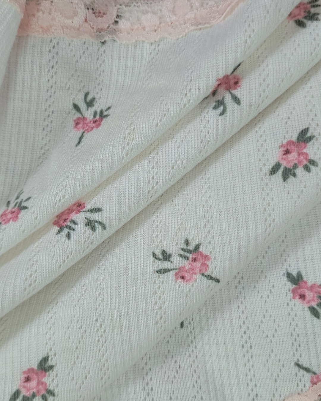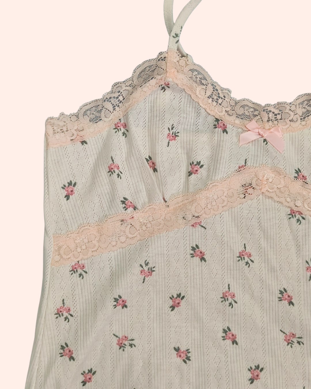 Musculosa fresca con diseño de flores y encaje en los bordes.